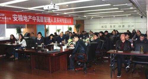 为进一步提高公司中高层管理人员的业务水平和管理能力,打造高效的执行团队,更好地实现公司发展的战略目标,2017年12月1日安粮地产在公司会议室组织开展中高层管理人员系列专题培训,公司领导、本部中层管理人员和各项目公司高管及营销部、商业部、经营部等中层管理人员共48人参加了培训。培训分为项目成本管控培训、商业地产去化研讨会和执行力训练三个部分。